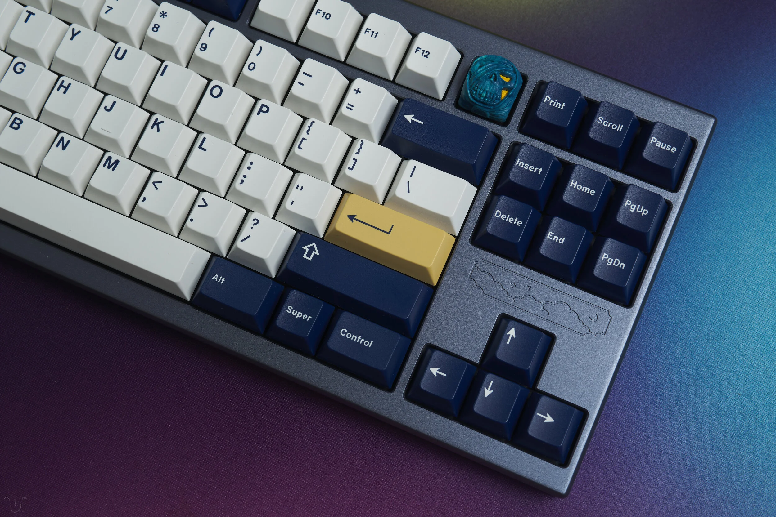 Lubed (205g0?) Gateron Ink switches, with 70g springs and Deskeys films - mounted on an aluminum half plate.