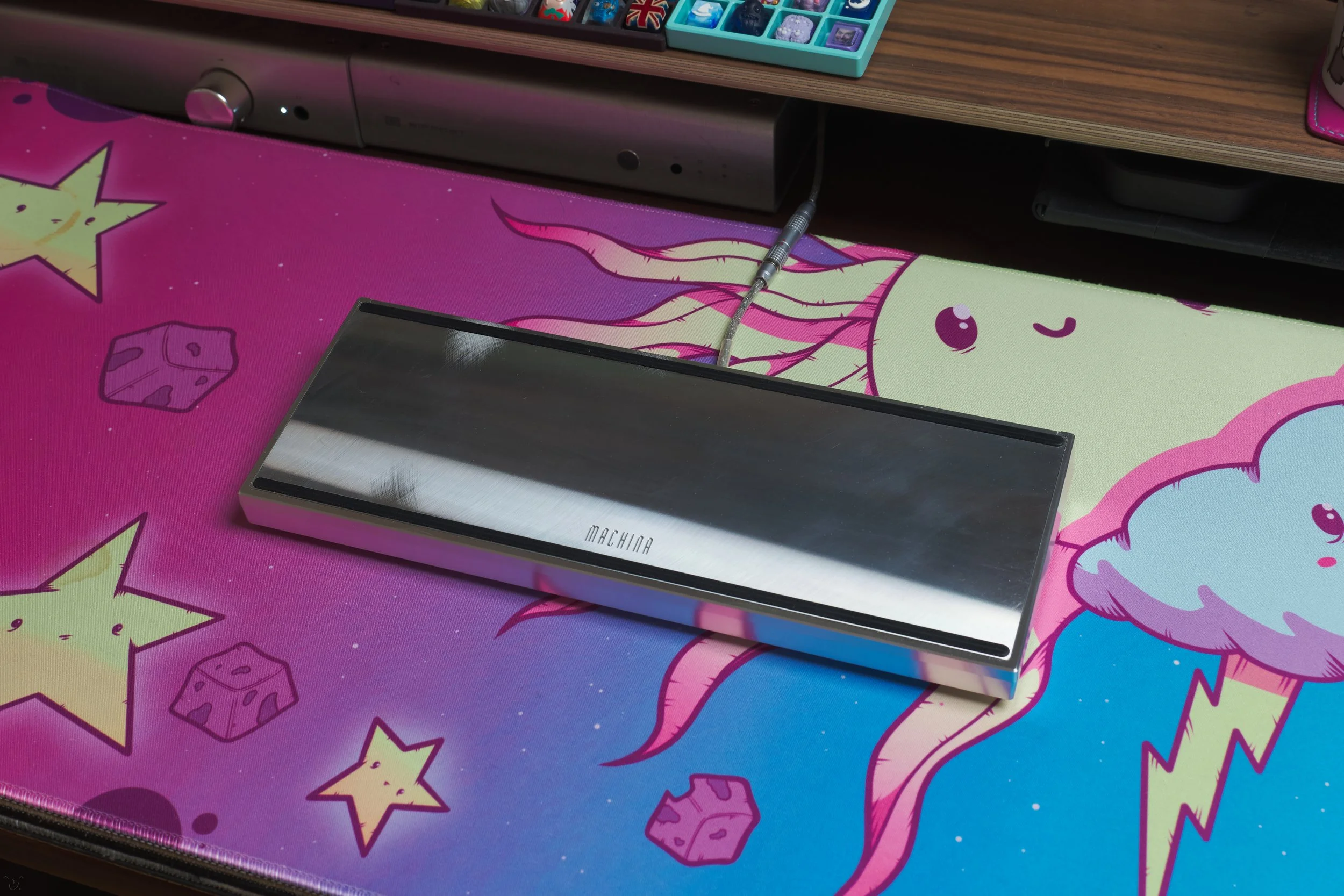 Lubed (205g0) Cherry MX Black switches, with 62g springs and TX films, mounted on an aluminum half plate.