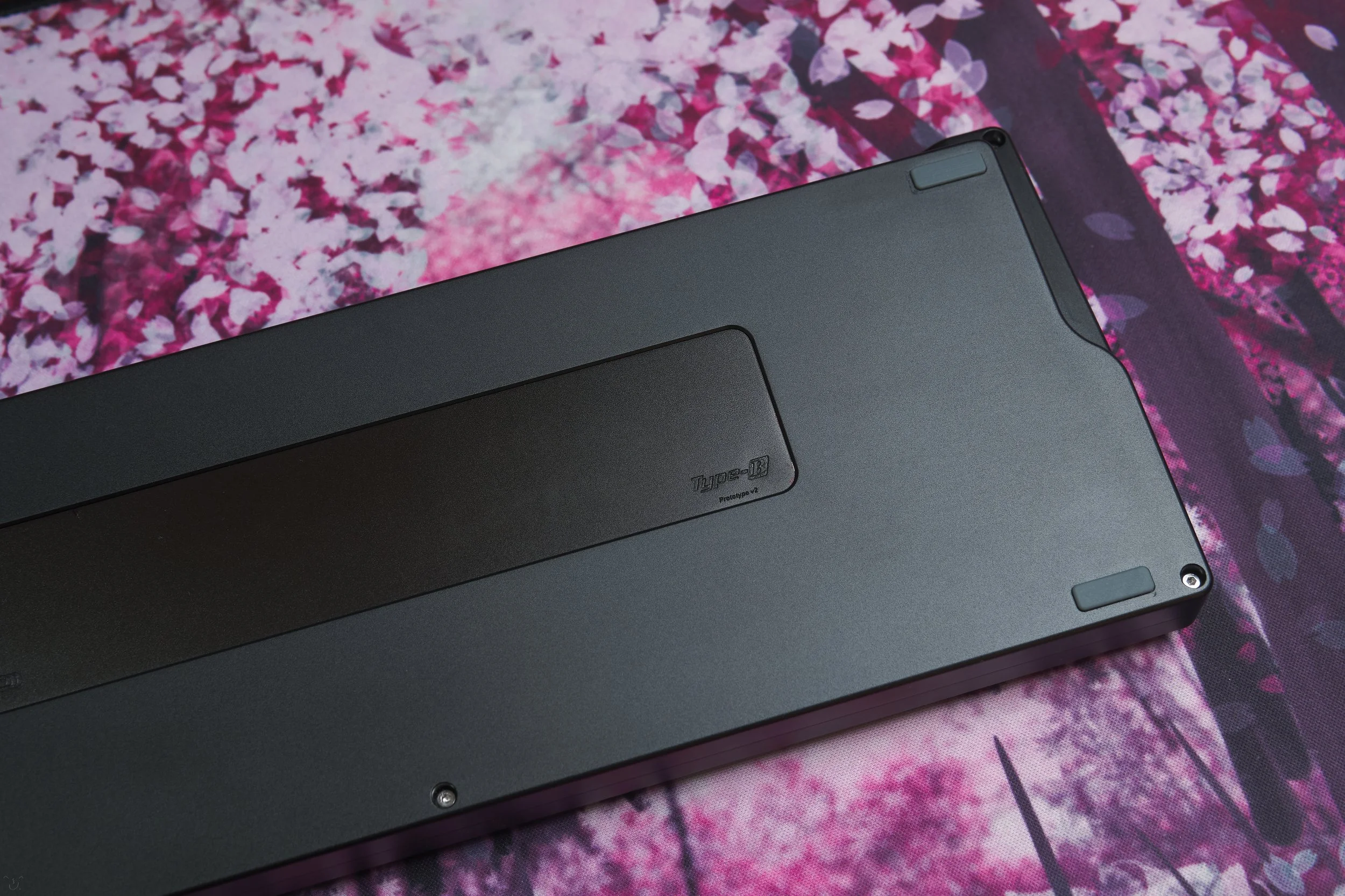 Lubed (205g0) Cherry MX Black switches, with 62g springs and stickers, mounted on an aluminum full plate.