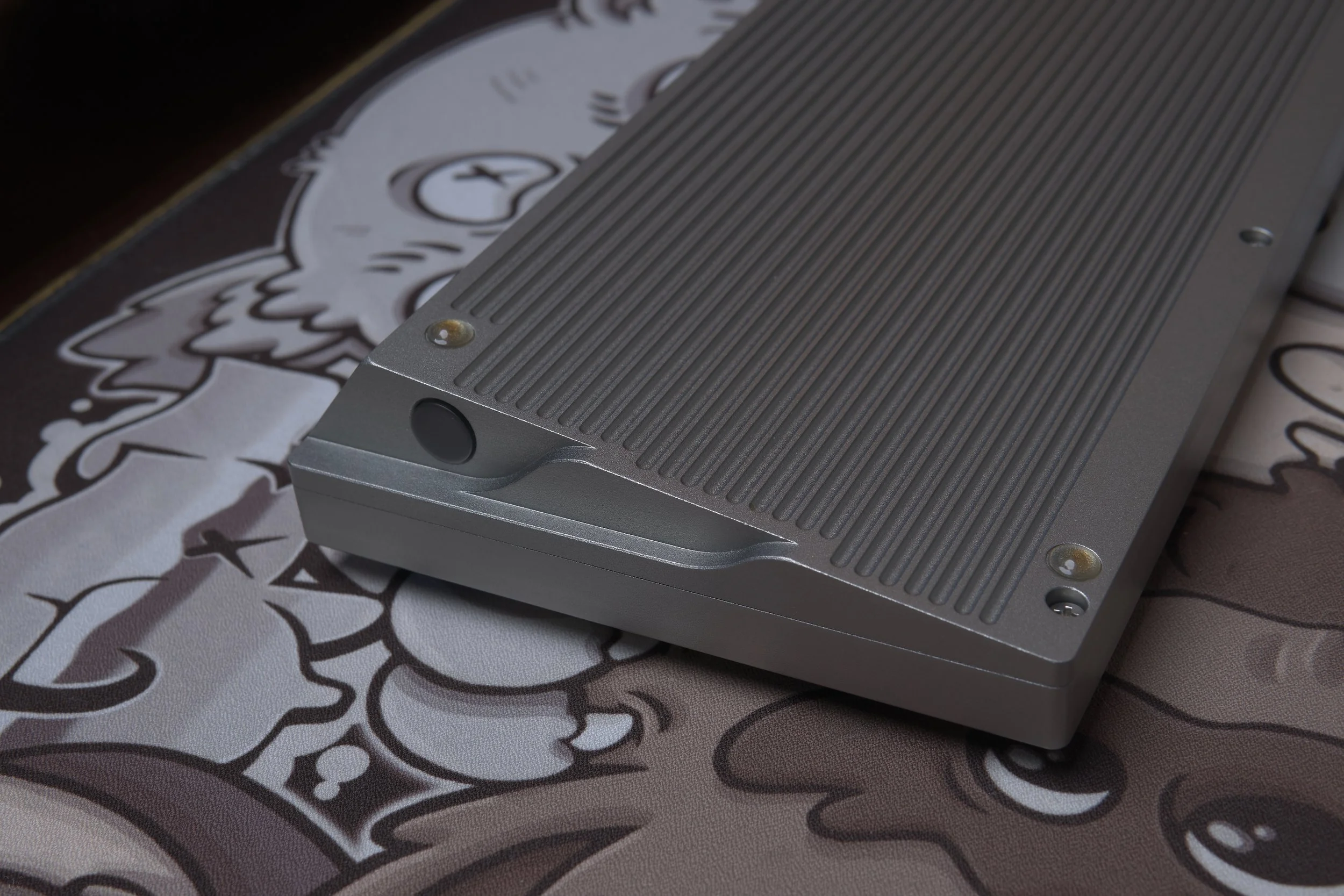 Grey-anodized aluminum case with polycarbonate cylinder diffusers.