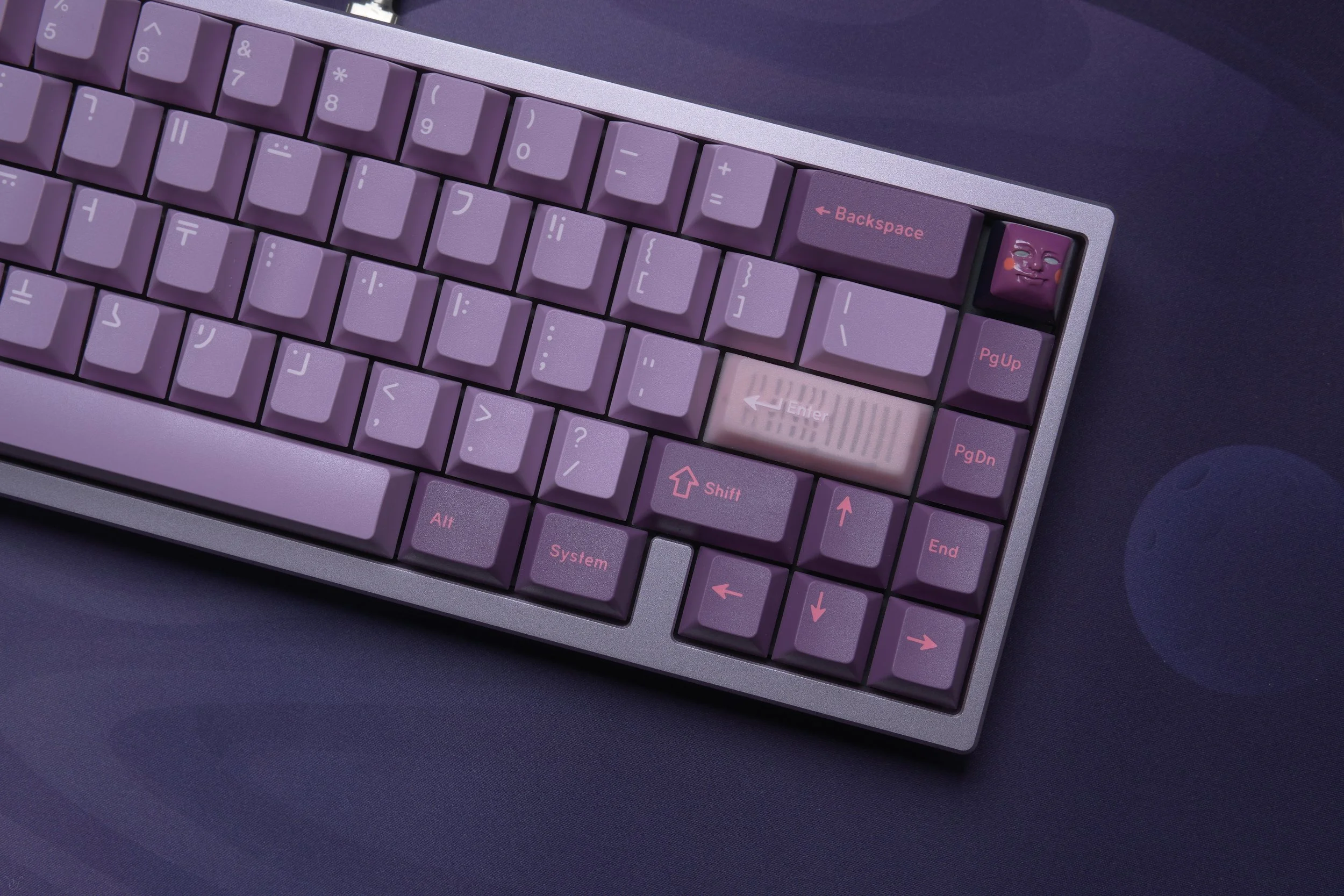 Lubed (TriboSys 3204) Durock Blush switches, with 63.5g springs and TX films, mounted on an aluminum full plate.