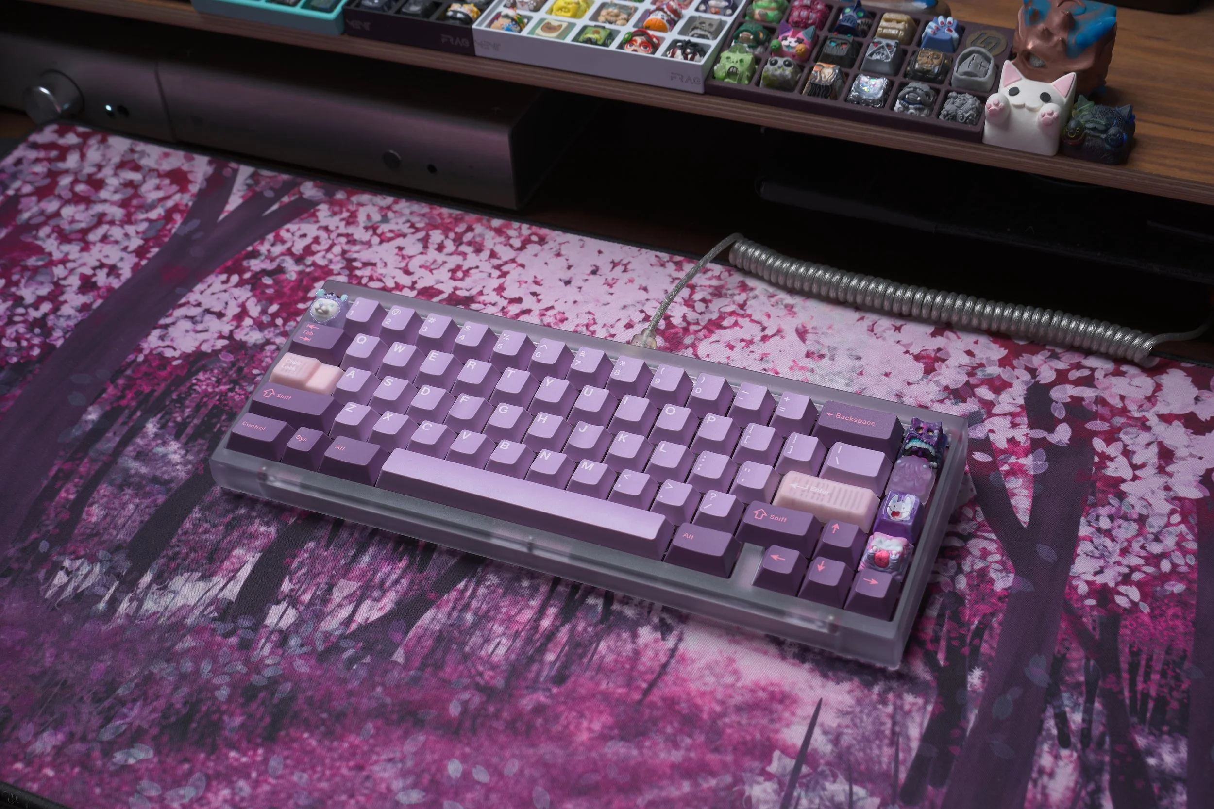 Sandblasted polycarbonate top and purple-violet anodized aluminum middle and bottom .